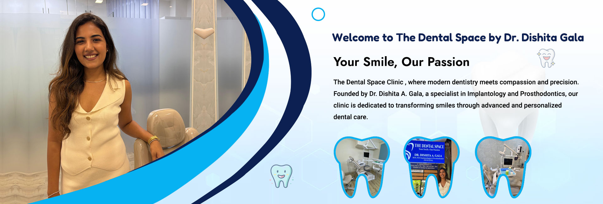 Dr. Gala completed her BDS from YMT Dental College and earned a Fellowship in Implantology and Prosthodontics from Saveetha Dental College. She is also a Fellow of the International Congress of Oral Implantologists (FICOI, USA) and has completed an advanced course in Root Canal Treatments. After years of working with senior dental specialists, she fulfilled her dream of creating a state-of-the-art digital dental clinic — equipped with the latest technologies and designed for precision, comfort, and exceptional patient experiences.